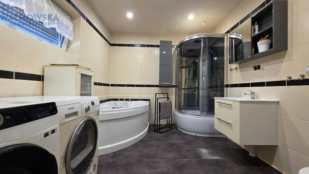Duża łazienka oraz praktyczna garderoba z oknem.